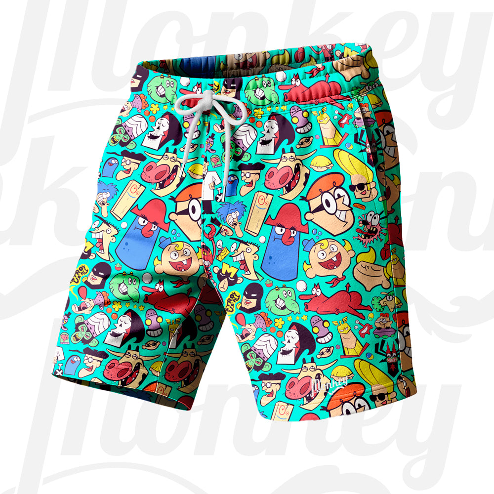 Características: cintura elástica, cintura alta, estampado de dibujos animados, cintura con cordón, bolsillo tipo camuflado.